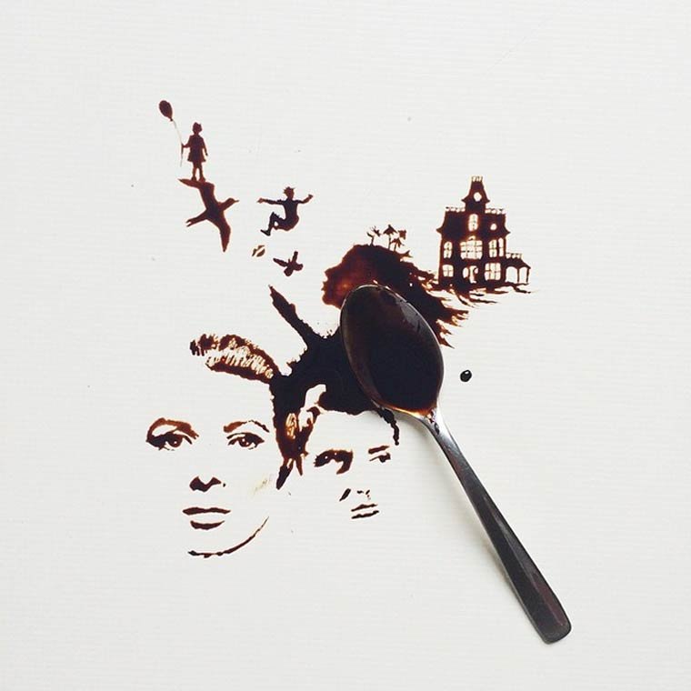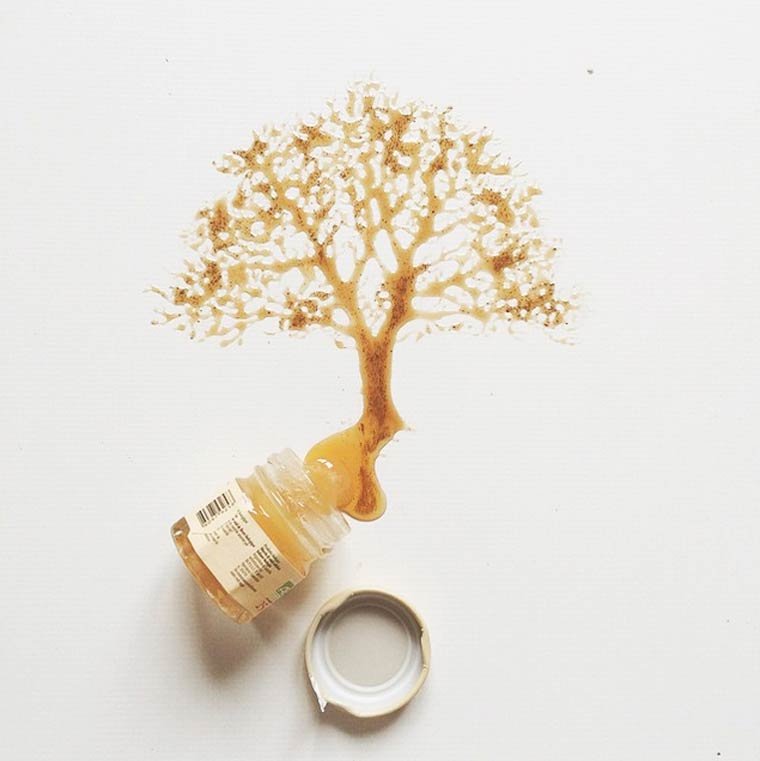 L’artiste italienne Giulia Bernardelli réalise de très jolies œuvres artistiques avec les taches de café, miel et sauce au chocolat renversées . Le résultat est vraiment bluffant !