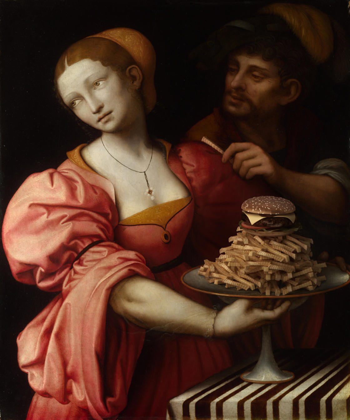 L’artiste brésilien Gabriel Nardelli Araujo a décidé à travers une série de photo, de combiner l’art classique et la vie moderne. Pour cela, il revisite des tableaux de la Renaissance en y ajoutant des burgers, frites et boissons gazeuses !