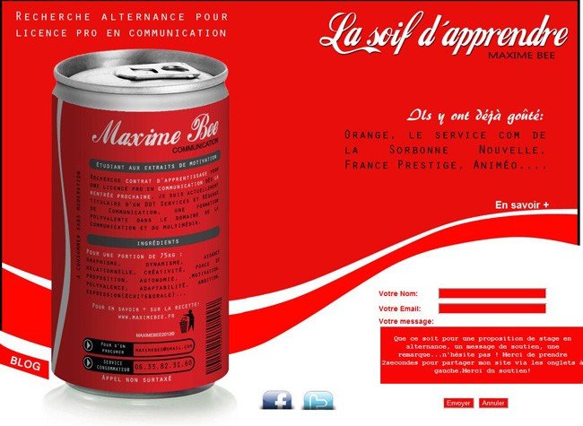 A lire aussi, le CV sur une boîte à burger pour postuler chez Big Fernand ou encore le CV en tablette de chocolat 3D :)
