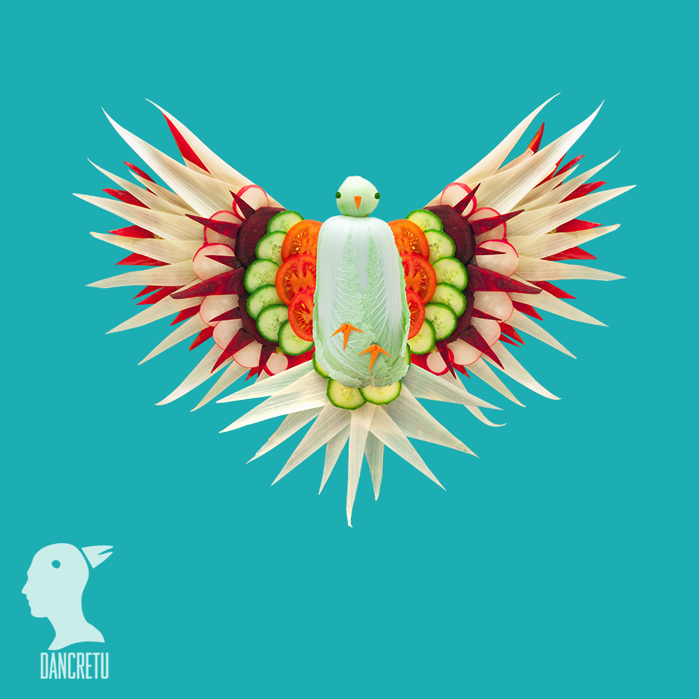 Et voici qu’arrive Dan Cretu, cet artiste roumain qui nous offre un ensemble de créations artistiques alimentaires sur son Tumblr.