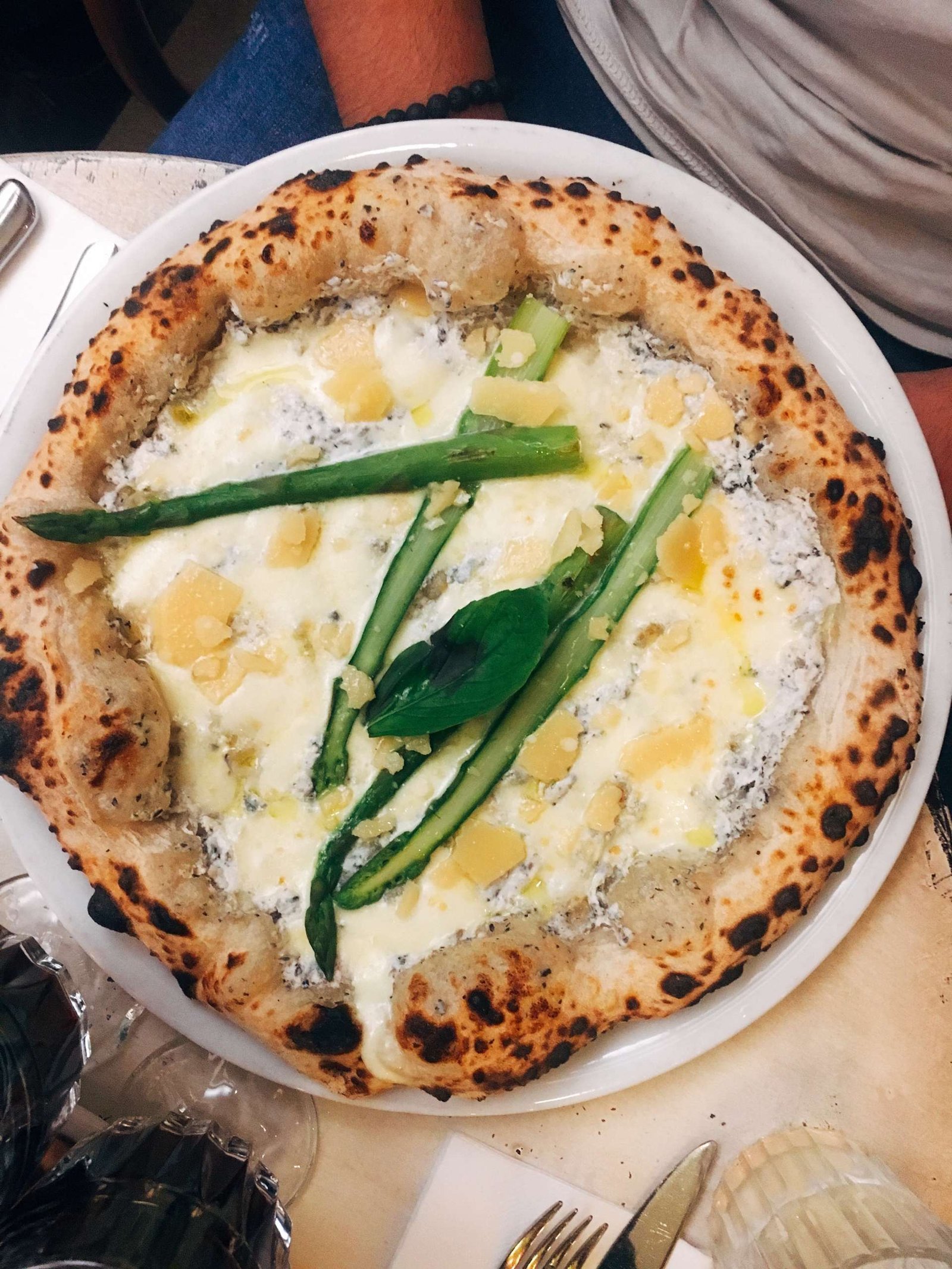 Mais ce critère-là reste personnel. Nous ne sommes pas tous égaux devant la pâte à pizza – et si certains la préfèrent fine et croquante, d’autres la préféreront épaisse et aérienne. Le plus décevant cependant, sonne comme une haute trahison : le four à bois, qui confère à la pizza ce petit supplément d’âme, peut parfois laisser un souvenir un peu trop encombrant – une fine pellicule de brûlé au dos de la pâte. Et là, difficile de faire l’impasse. Bien que travaillés et savoureux, les ingrédients de la pizza se laissent totalement submerger par la goût âcre de la pâte carbonisée. Alors on se rabat sur le coeur, et on gratte légèrement le dos de la pizza, pour trouver un peu de réconfort dans la crème truffée.