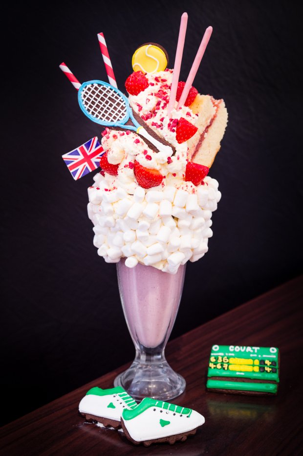Pour se mettre aux couleurs du tournoi, ce freakshake, disponible jusqu’au 10 juillet, est orné d’un drapeau anglais, d’une raquette ou encore de balles de tennis. Le dessert gourmand parfait pour les fans de tennis !